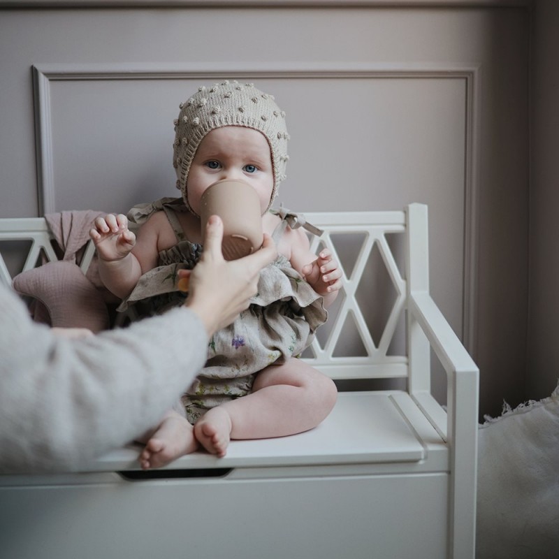 La taza está hecha 100 % de silicona de grado alimentario y no supone ningún inconveniente para las encías y los dientes de los niños pequeños mientras beben.