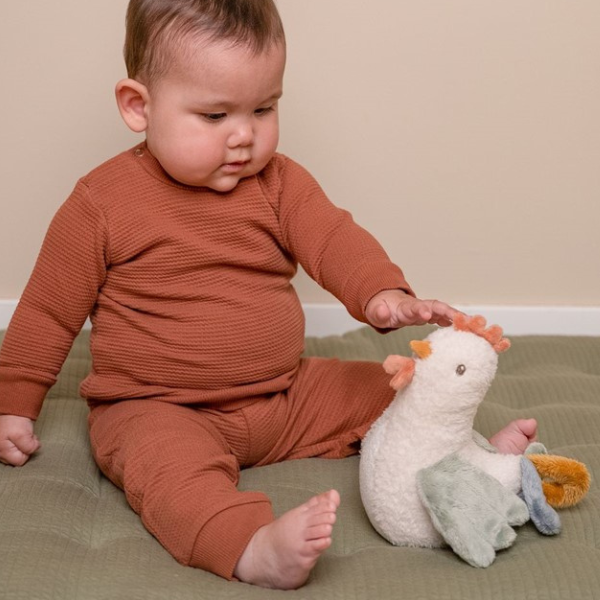 Empuja a esta gallinita y observa como se balancea de un lado a otro escuchando su tintineo. Este juguete es ideal para promover las habilidades motoras de una manera lúdica.