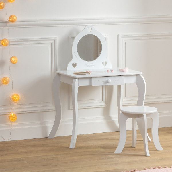 Tocador y taburete infantil blanco