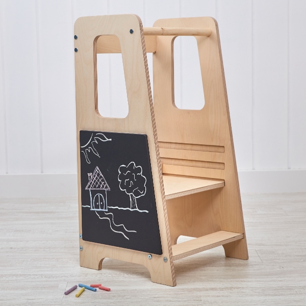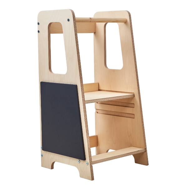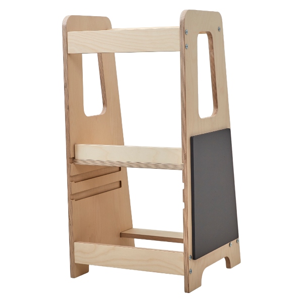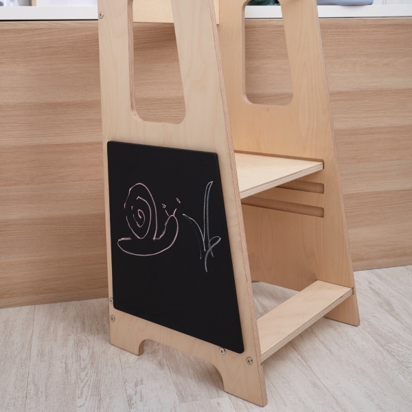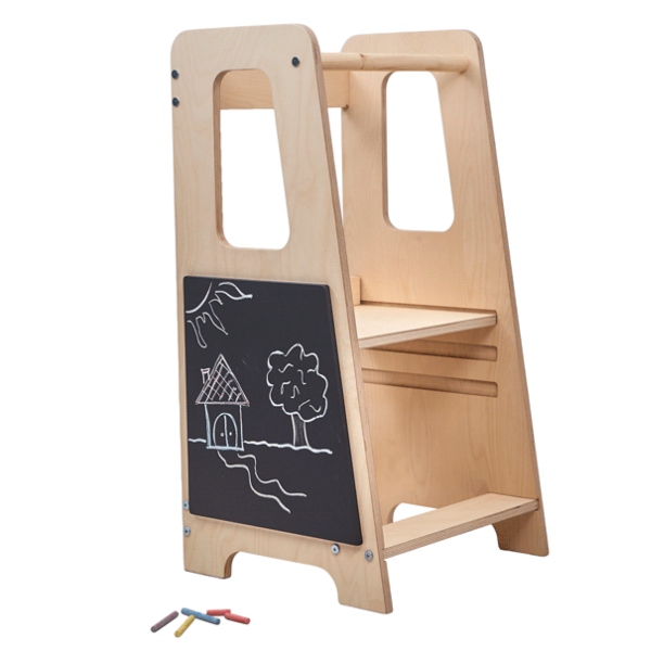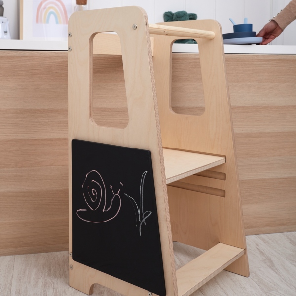 Esta torre es perfecta para que los peques adquieran independencia y se puedan desenvolver solitos en las tareas cotidianas del día a día, como lavarse las manos, los dientes etc.. La plataforma para los pies, tiene tres alturas para adaptarse al crecimiento de los peques. Además, incluye una pizarra para que desarrollen su creatividad mientras se divierten. Es importante colocar la plataforma a la altura adecuada para que su cintura no sobrepase nunca las barras de seguridad.