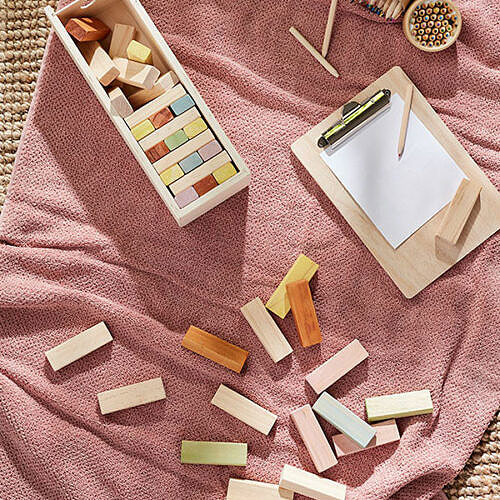Juego de construcción atemporal y clásico. Fabricado en barras de pino.