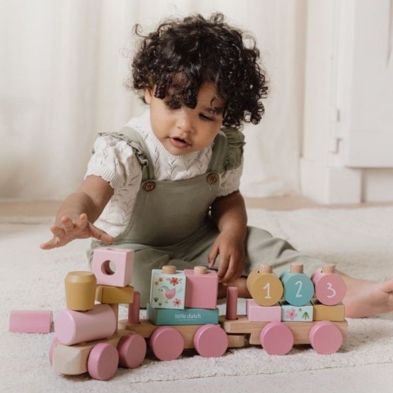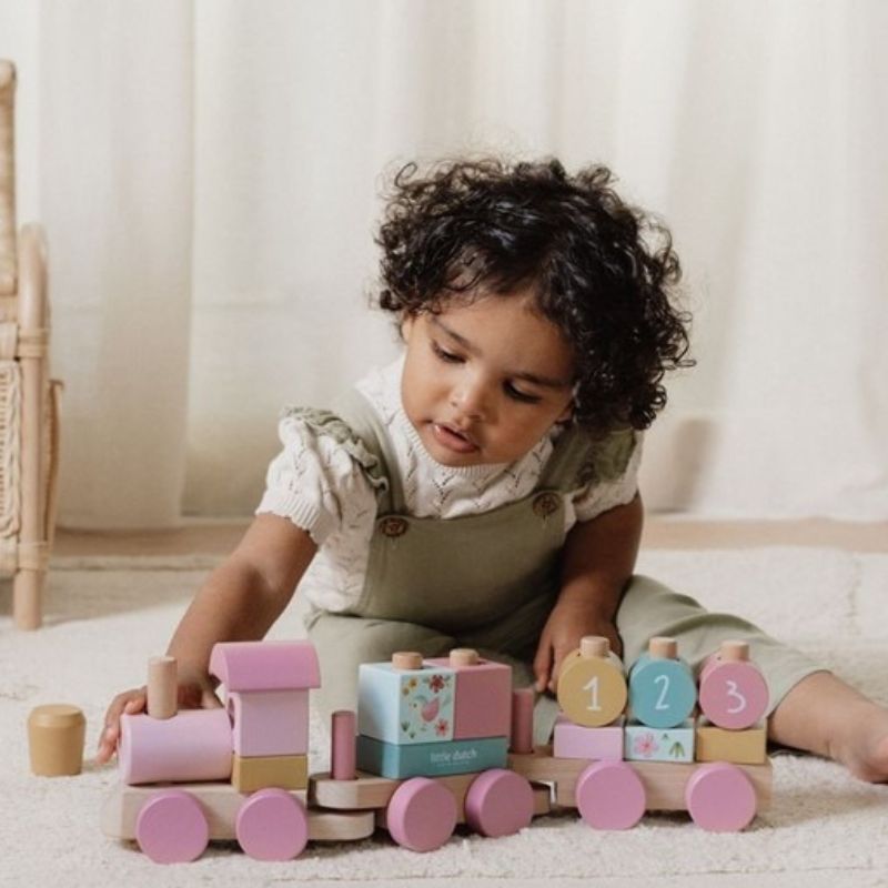 Sube a este maravilloso tren y déjate llevar por la magia del jardín de las hadas. Construye los tres vagones apilando los bloques de madera, decorados con flores coloridas, simpáticos pajaritos y los números 1, 2 y 3. Este encantador tren apilable invita a los peques a dejar volar su imaginación mientras juegan. Además, es una forma entretenida de estimular la coordinación mano-ojo y las habilidades motoras durante el juego.