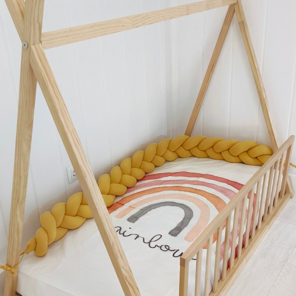 Preciosa trenza confeccionada en algodón. La puedes utilizar como chichonera, protector de cuna y cojín de lactancia. Un complemento perfecto para las camas y las cunas para beneficiar el descanso y la seguridad de tu peque.