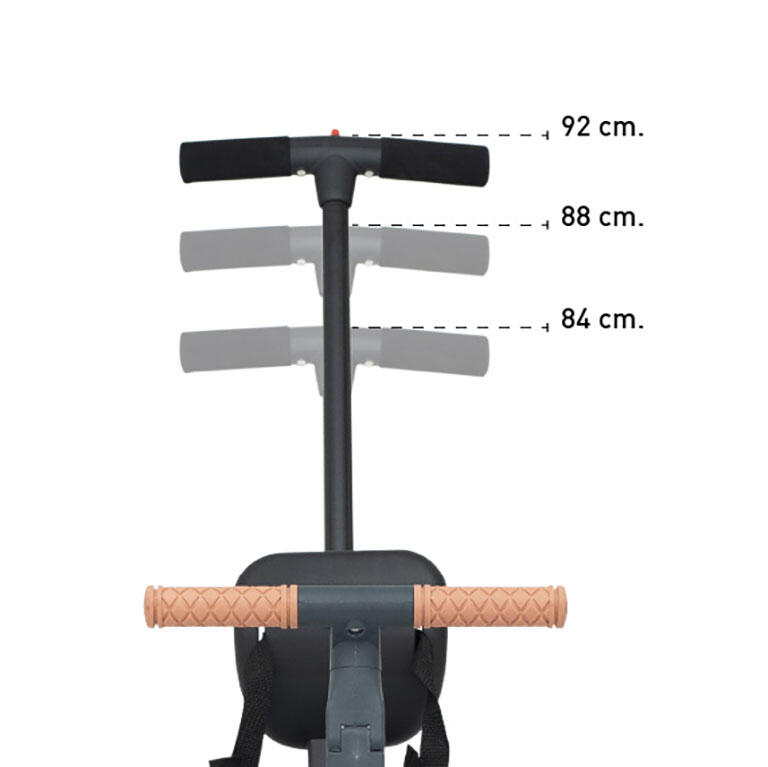 - Provisto de un sencillo sistema que permite transformar la bicicleta sin herramientas y ajustarla a la edad del niño.