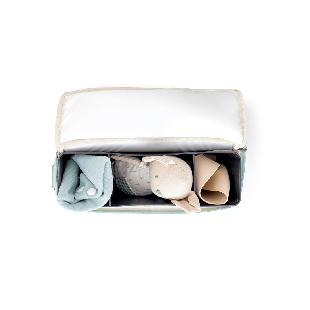 Esta trona portátil te resultará de lo más práctica. Podrás utilizarla en casa o fuera de ella. Se puede utilizar también como bolso y cuenta con un amplio espacio para guardar los utensilios del bebé. Se adapta a la mayoría de sillas de tamaño estándar. Es estable, cómoda y segura.