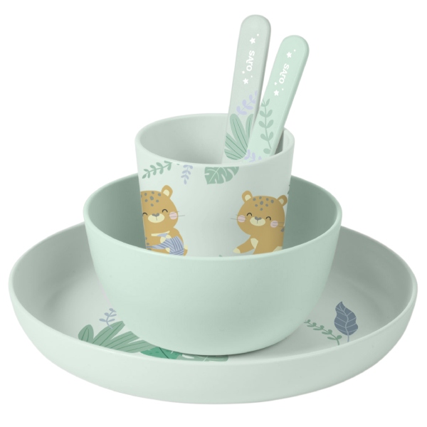 Vajilla 5 piezas Jungle Cheetah Mint