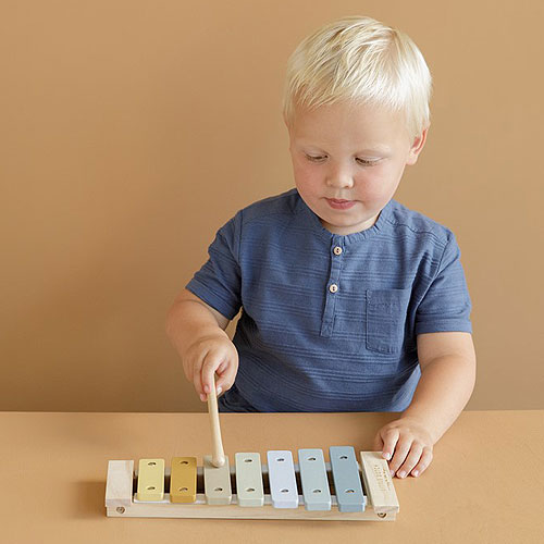 Descubre el mundo de la música con este bonito xilófono. Toca sus teclas fuerte, flojo, rápido, lento, agudos y graves.